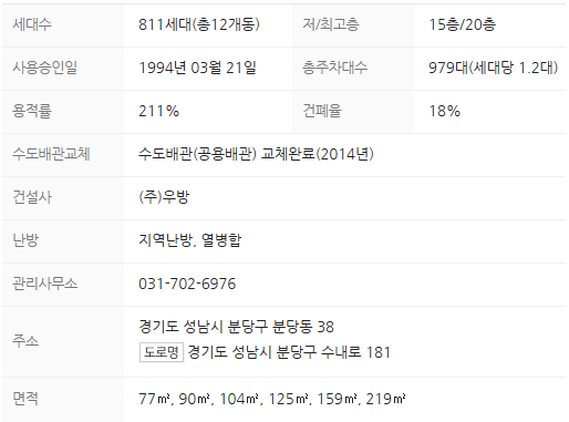 오늘은 경기도 성남시 분당구 분당동에 위치한 샛별마을 우방아파트를 살펴보겠습니다.