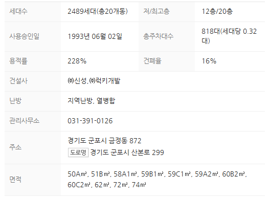 오늘은 경기도 군포시 금정동(872번지)에 위치한 충무주공2단지 1차 아파트를 살펴봅니다.